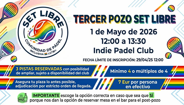 El segundo evento será en el Indie Padel Club el viernes 1 de mayo, de 12:00 a 13:30. Esta ocasión promete ser igual de emocionante. La idea es disfrutar del deporte, pero también de un buen rato entre amigos y compañeros de juego. ¡No olvides marcar estas fechas en tu calendario!